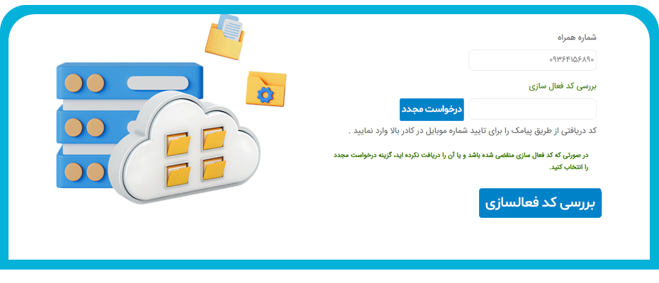 در صورتی که کد فعالسازی منقضی شد و یا آن را دریافت نکردید، گزینه